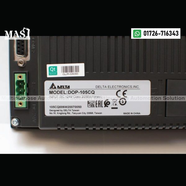 For the BEST PRICE and current availability of the Delta HMI DOP-105CQ, please CALL US at Multipurpose Automation Solution in Gazipur, Dhaka Division, Bangladesh. Our team is ready to provide you with a competitive quote and discuss the suitability of this model for your specific requirements.