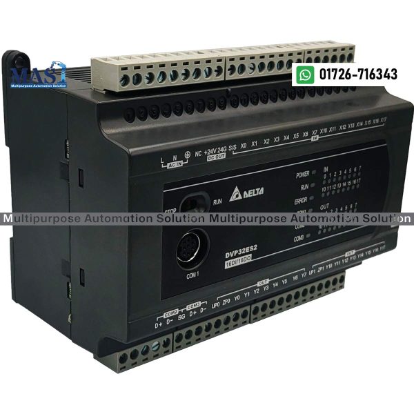 Elevate your industrial control systems with the powerful and highly capable Delta PLC DVP32ES200R, a flagship CPU module from Delta’s versatile DVP-ES2 series. This standard-type PLC offers a substantial 16 digital inputs and 16 robust relay outputs, providing a comprehensive and reliable solution for complex and large-scale automation applications. With its high-speed 32-bit CPU, extensive program and data memory, and multiple independent communication ports, the DVP32ES200R is engineered for superior efficiency, flexibility, and robust connectivity in demanding industrial environments. Available with expert support at Multipurpose Automation Solution in Gazipur, Dhaka Division, Bangladesh.