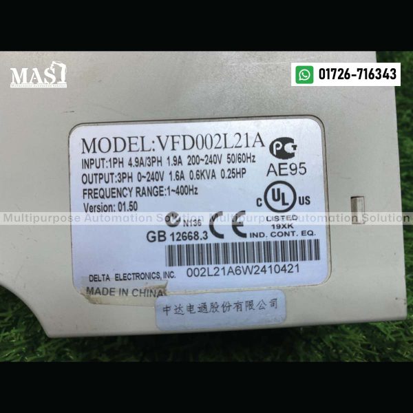 Experience efficiency, reliability, and cost savings with the DELTA VFD 0.2KW 1-Phase, exclusively at Multipurpose Automation Solution—your trusted partner in industrial automation!