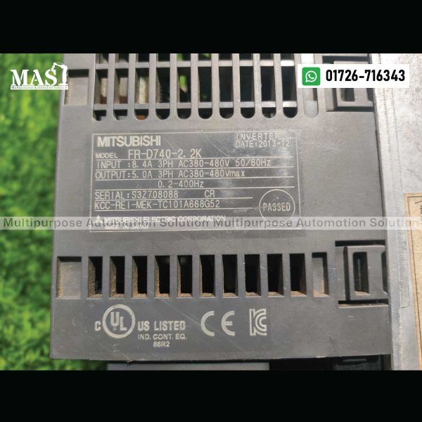 The Mitsubishi FR-D740-2.2K inverter drive is available for purchase at Multipurpose Automation Solution for 18,000 Taka. Contact us today for the latest availability and to place your order in Gazipur, Dhaka Division, Bangladesh. Our team is ready to assist you in finding the ideal motor control solution for your specific industrial requirements in Bangladesh.