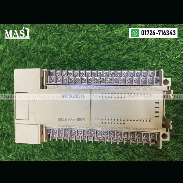 The MITSUBISHI PLC FX2N-48MR is a powerful and versatile Programmable Logic Controller (PLC) offered by Multipurpose Automation Solution in Gazipur, Dhaka Division, Bangladesh. As a popular unit in the well-established FX2N series from Mitsubishi Electric, this PLC provides a comprehensive solution for a wide range of automation applications requiring significant I/O and advanced functionalities.