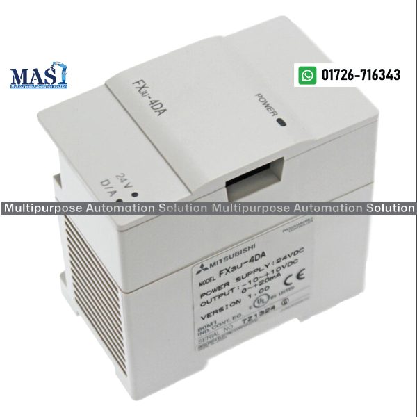 For the BEST PRICE and current availability of the Mitsubishi PLC FX3U-4DA, please CALL US at Multipurpose Automation Solution in Gazipur, Dhaka Division, Bangladesh. Our team is ready to provide you with a competitive quote and discuss the suitability of this module for your specific automation project.