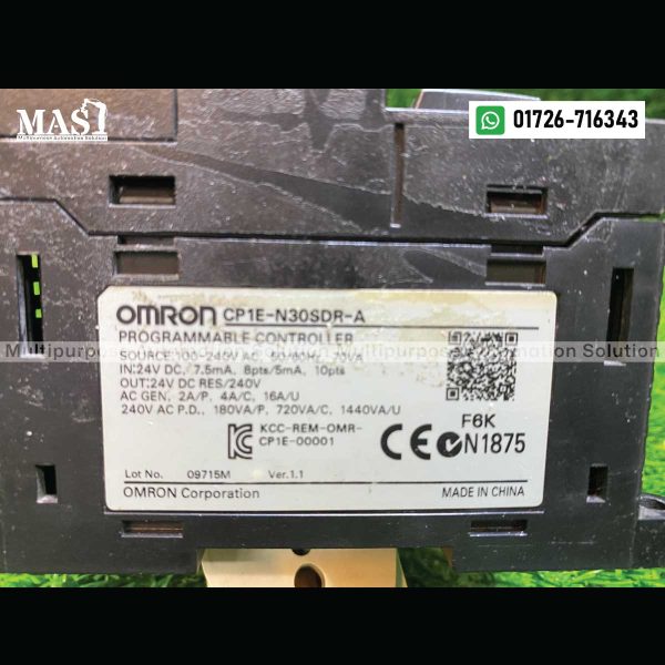 The OMRON PLC CP1E-N30SDR-A is a compact and powerful Standard Programmable Logic Controller (PLC) offered by Multipurpose Automation Solution in Gazipur, Dhaka Division, Bangladesh. As part of the advanced CP1E-N series from Omron, this PLC provides a high-performance solution for a wide range of basic to intermediate automation applications with enhanced features and a higher I/O count compared to smaller CP1E models. The “-A” suffix typically indicates a specific power supply or terminal block configuration.