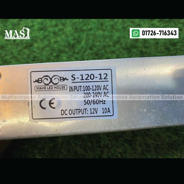 The S-120-12 SMPS from MAHE LED HOUSE is a high-performance switching power supply, designed for stable and efficient power delivery in various industrial and electronic applications. Now available for just 700 Taka at Multipurpose Automation Solution, this compact yet powerful SMPS ensures uninterrupted power for LED lighting, automation systems, and more.