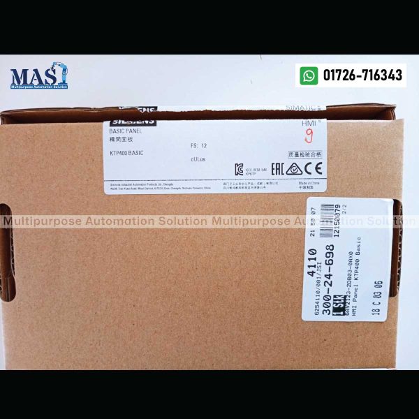 For the BEST PRICE and current availability of the Siemens HMI SIMATIC KTP400 Basic (6AV2123-2DB03-0AX0), please CALL US at Multipurpose Automation Solution in Gazipur, Dhaka Division, Bangladesh. Our team is ready to provide you with a competitive quote and discuss the suitability of this HMI for your specific requirements.