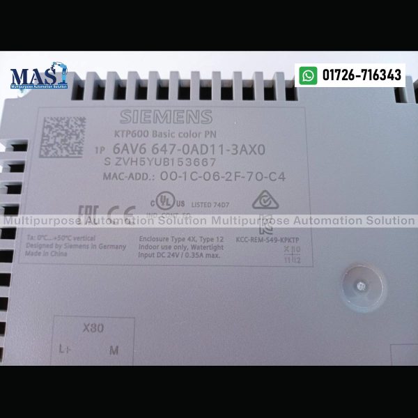 Siemens HMI SIMATIC KTP600 Basic Color (6AV6647-0AD11-3AX0) – 5.7-inch Widescreen PROFINET Key/Touch Panel – Buy in Bangladesh