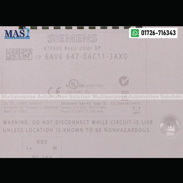 For the BEST PRICE and current availability of the Siemens HMI SIMATIC KTP600 Basic Color DP (6AV6647-0AC11-3AX0), please CALL US at Multipurpose Automation Solution in Gazipur, Dhaka Division, Bangladesh. Our team is ready to provide you with a competitive quote and discuss the suitability of this HMI for your specific requirements.