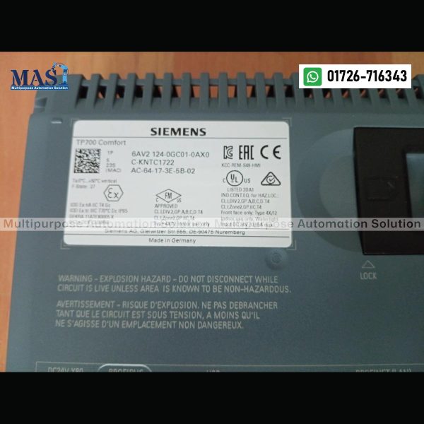 Siemens HMI SIMATIC TP700 Comfort (6AV2124-0GC01-0AX0) – 7-inch Widescreen TFT Touch Panel – Buy in Bangladesh