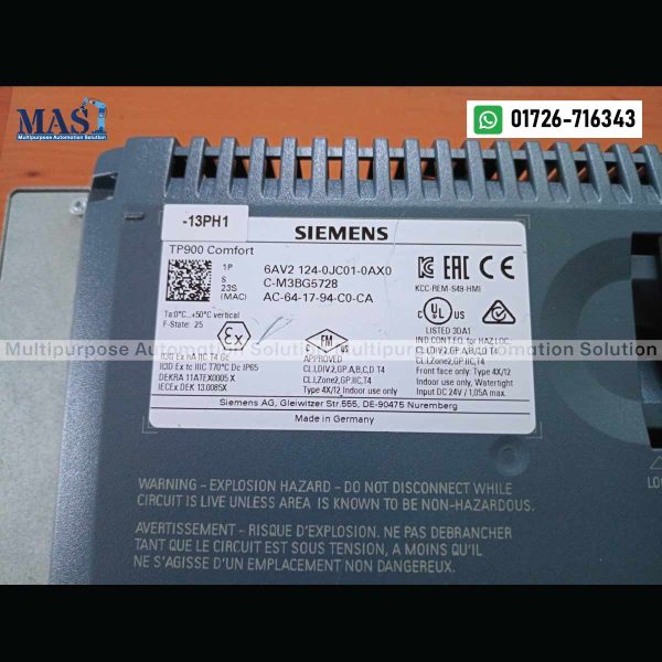 For the BEST PRICE and current availability of the Siemens HMI SIMATIC TP900 Comfort (6AV2124-0JC01-0AX0), please CALL US at Multipurpose Automation Solution in Gazipur, Dhaka Division, Bangladesh. Our team is ready to provide you with a competitive quote and discuss the suitability of this powerful HMI for your specific requirements.